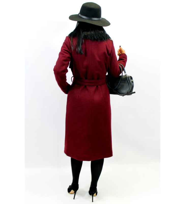 OCIEPLANY ZIMOWY PŁASZCZ Z KOŁNIERZEM BORDO