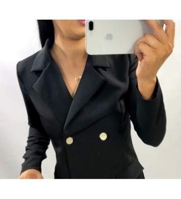 Marynarkowa sukienka ze złotymi guzikami