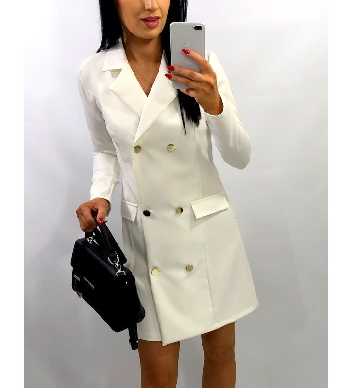 Marynarkowa sukienka ze złotymi guzikami