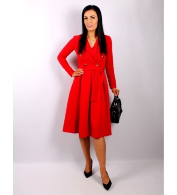 Sukienka z kopertowym dekoltem i złotymi guzikami -midi