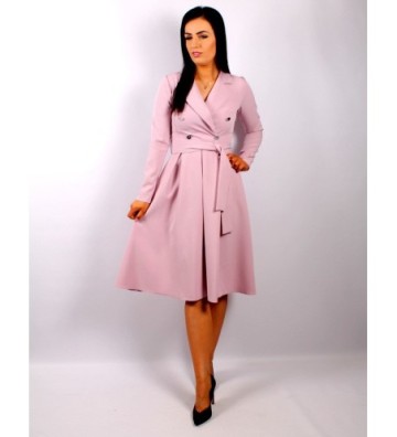 Sukienka z kopertowym dekoltem i złotymi guzikami -midi