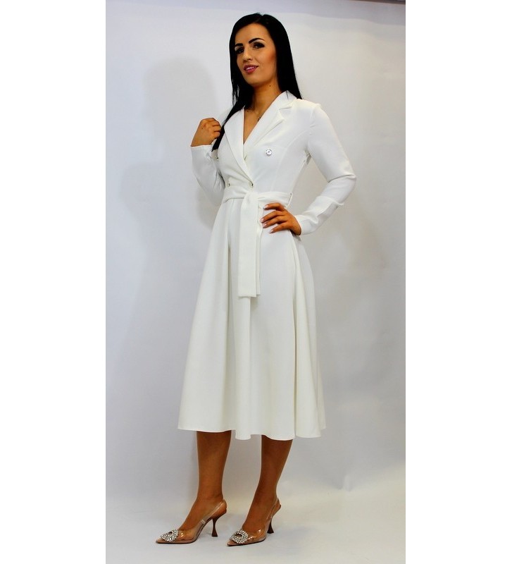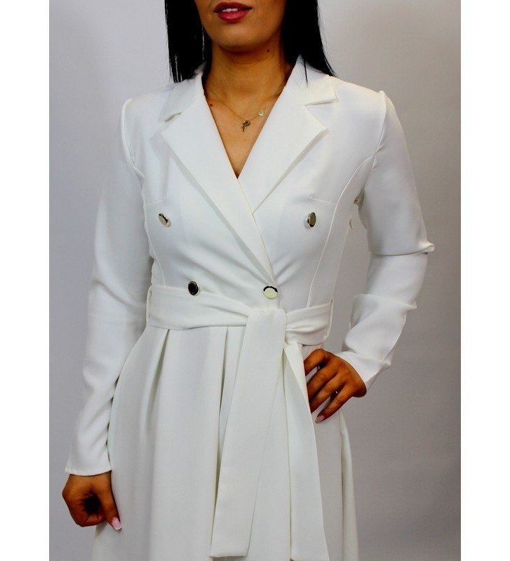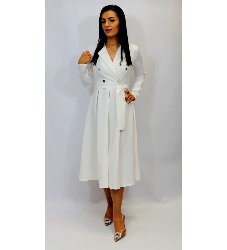 Sukienka z kopertowym dekoltem i złotymi guzikami -midi