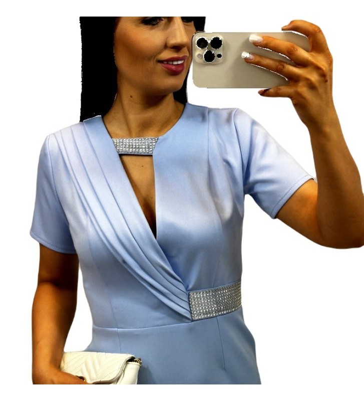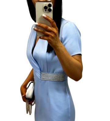 Wyjątkowego uroku dodaje błyszcząca taśma z diamencikami na dekolcie i w pasie